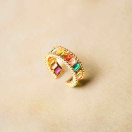 Golden Rectangular Multicolour Gem Ring