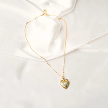 Golden White Heart Pendant Necklace
