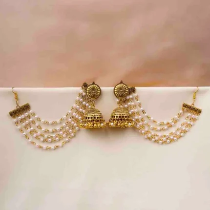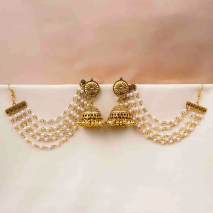 Traditional Gold Layered Pearl Hair Chain Earrings
