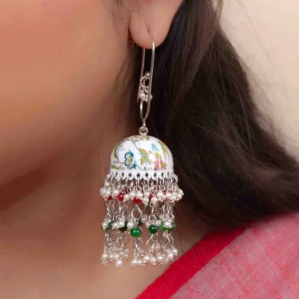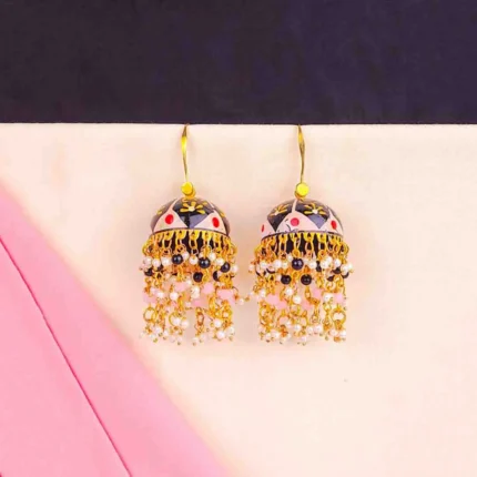 Meenakari square Mogra Pearls Dome Shaped Jhumka