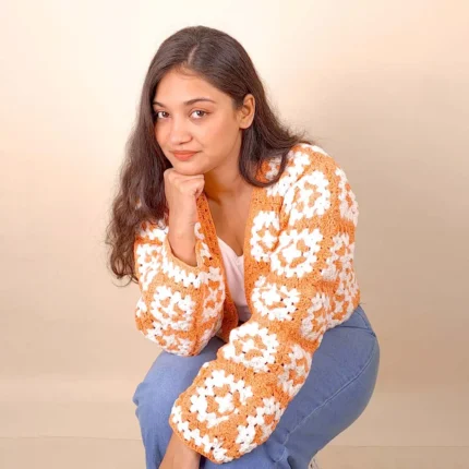 Orange n White Crochet Cardigan