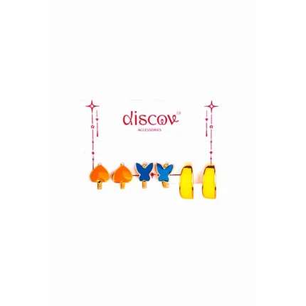 Set Of 3 Colorful Heart Butterfly Hoops Earrings Combo