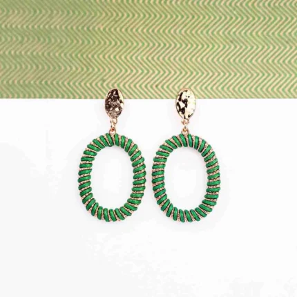 Eclectic Green Oval Drop Earrings