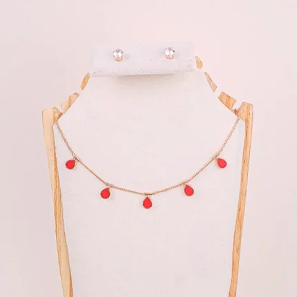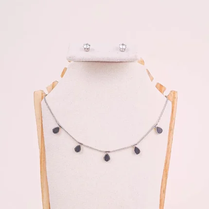 Teardrop Chain Necklace and Crystal Stud Earrings Set