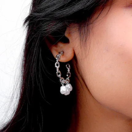 Silver Long Colourful Chain Tassel Jhumka Earrings