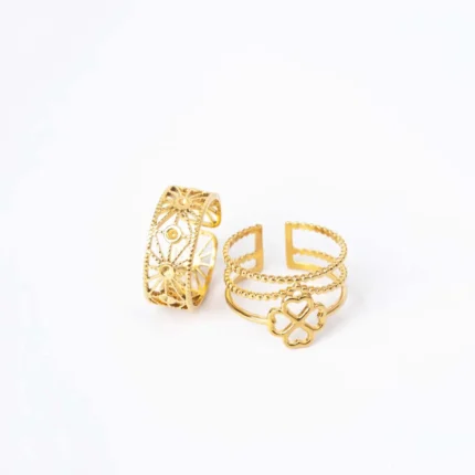 Pack of 2 Golden Filigree Band And Clover Rings