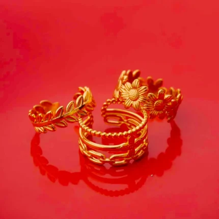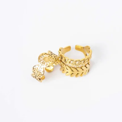 Pack of 3 Golden Floral Leaf Link Chain Rings