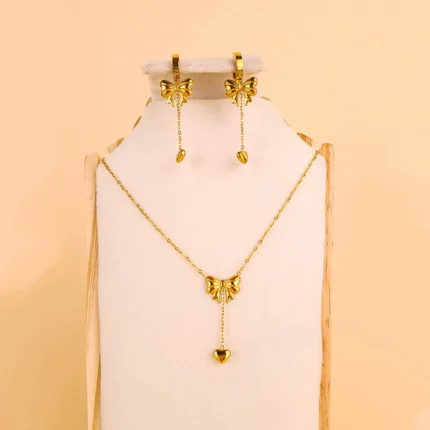 Gold Bow Tassel Chain Heart Jewellery Set