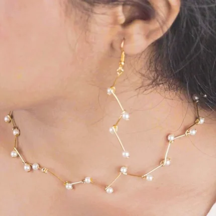 Gold Tone Pearl Heart Jewellery Set