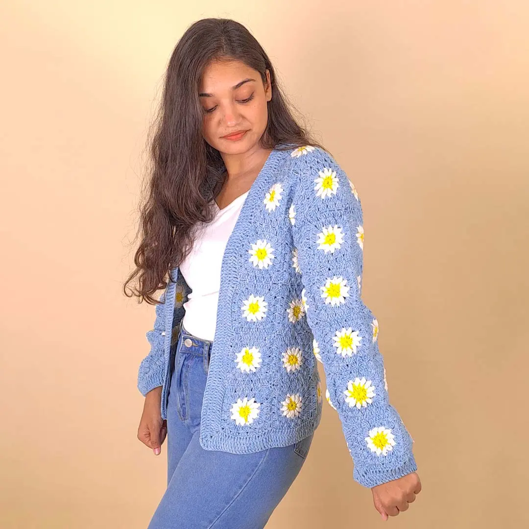 Wrap yourself in effortless charm with our Blue Blossom Cardigan, a beautifully handcrafted piece inspired by soft, floral elegance. Designed in calming shades of blue with delicate crochet detailing, this cardigan adds a dreamy, feminine touch to any outfit.