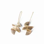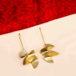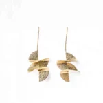 Wire hooked abstract designed brass earring featuring a twisted leaf like structure at the bottom