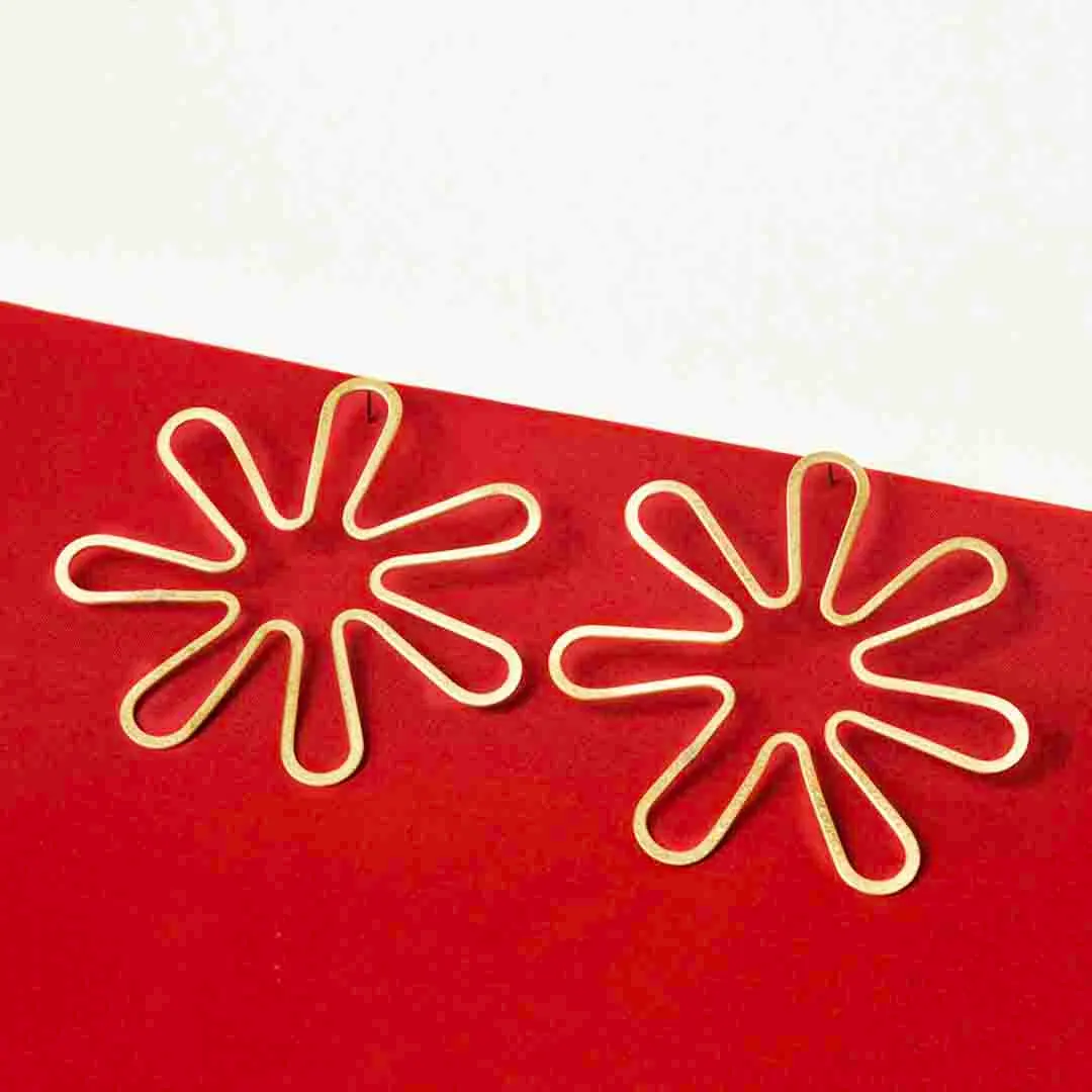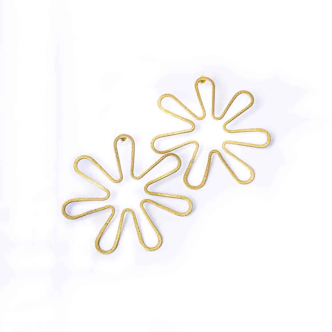 Brass drop earring designed in the shape of a flower with elongated looped petals and a push back post