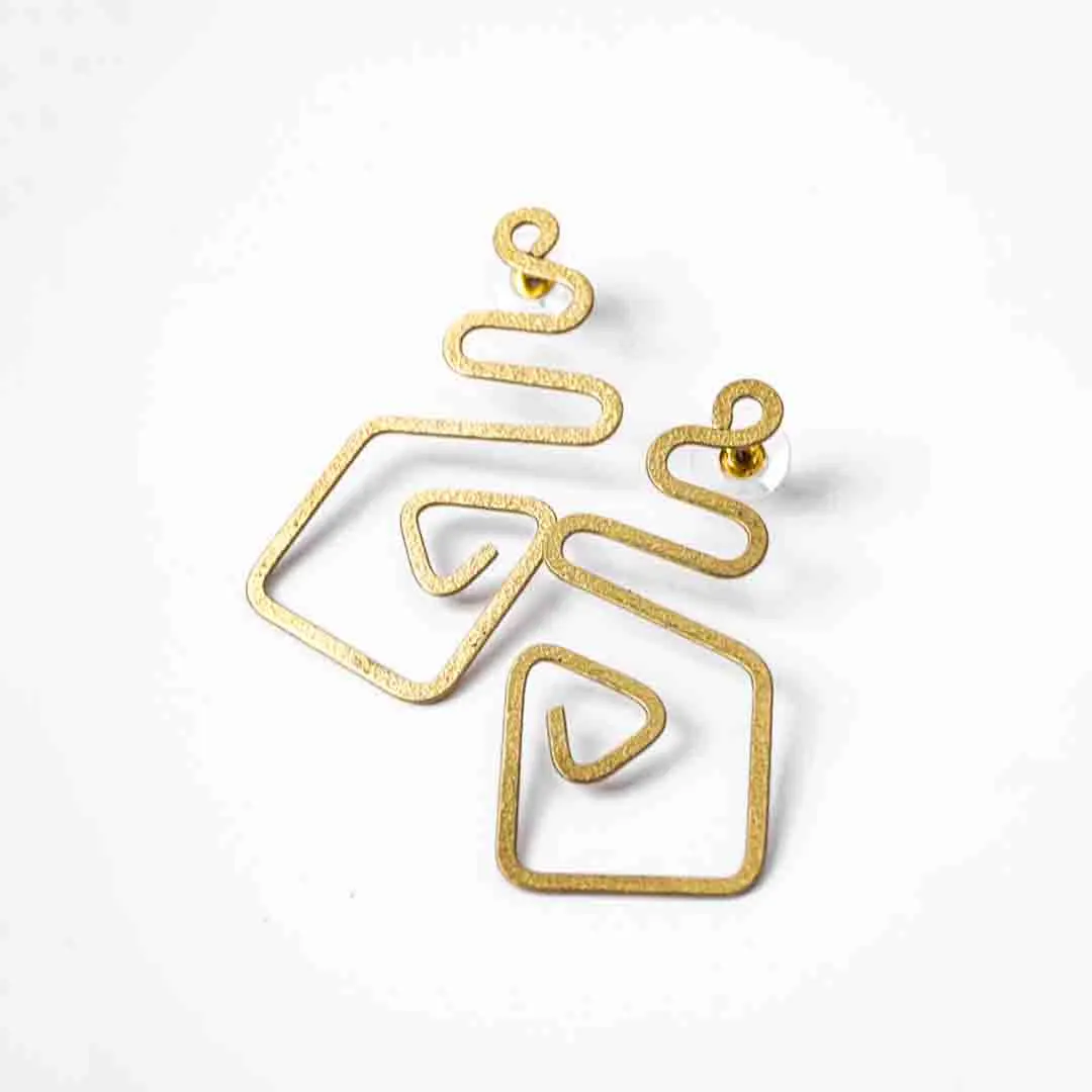 Irregular abstract structured brass earring with textured finish and a push back closure