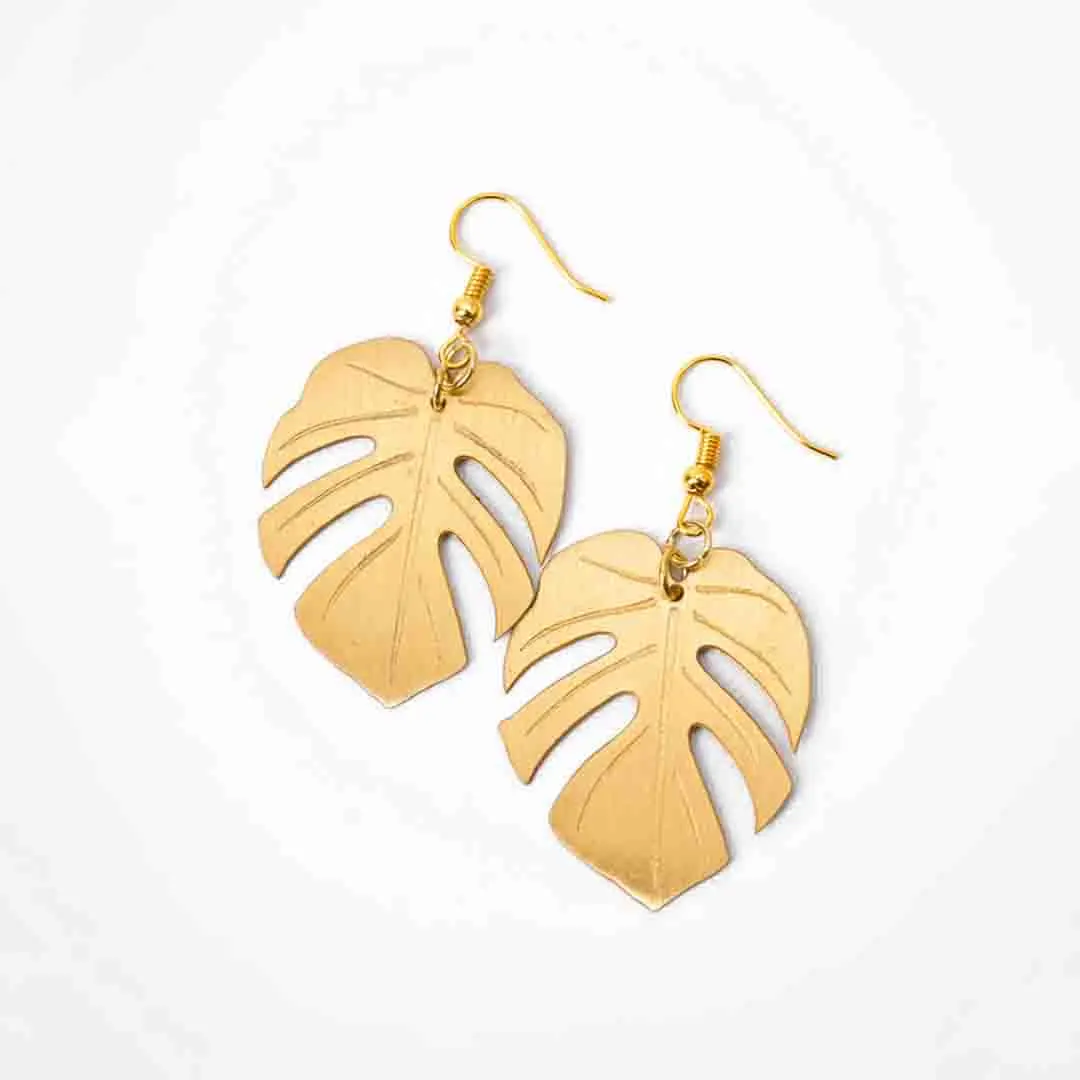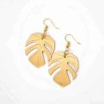 Leaf like structured brass earring with fine line detaling and sleek textured finish with a french hook