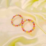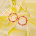 Vibrant round hoop earrings adorned with multicolor enamel beads in pink, yellow, purple, and orange tones. Designed in smooth polished finish, these lightweight hoops bring a playful yet chic statement to any look. Push-back closure ensures easy and secure wear.