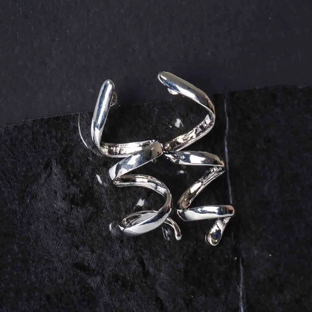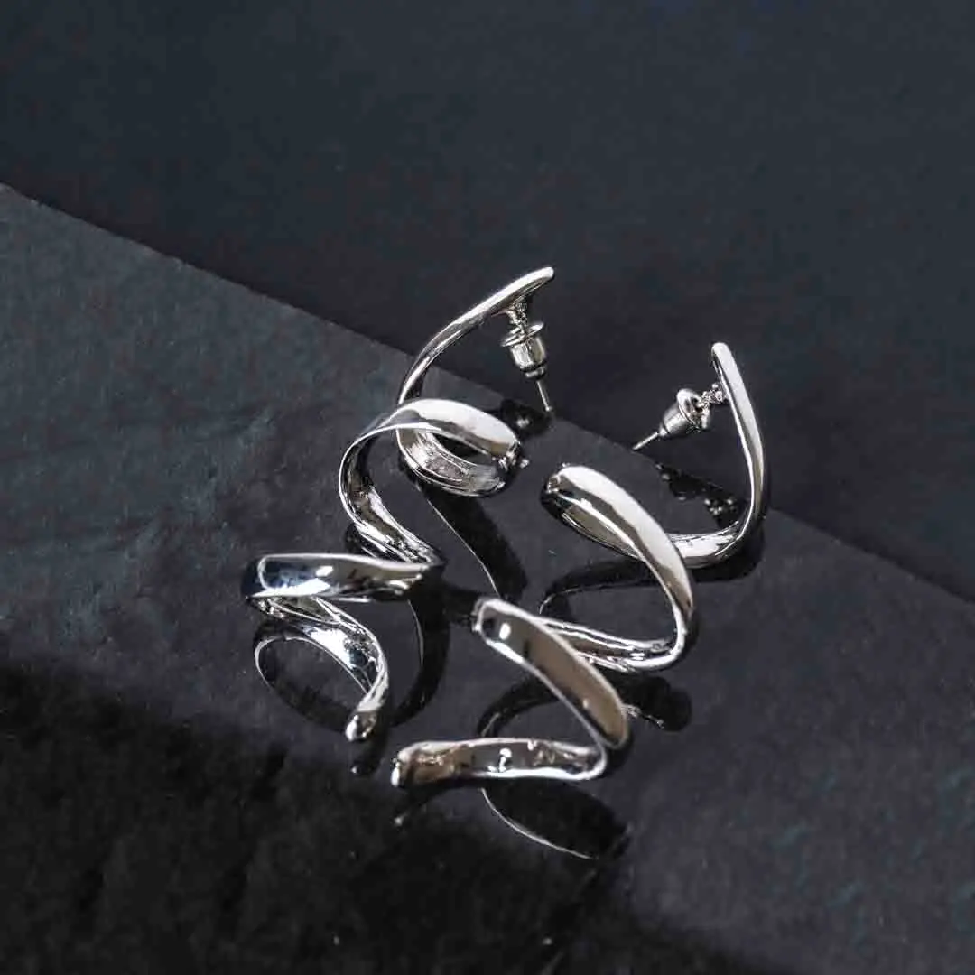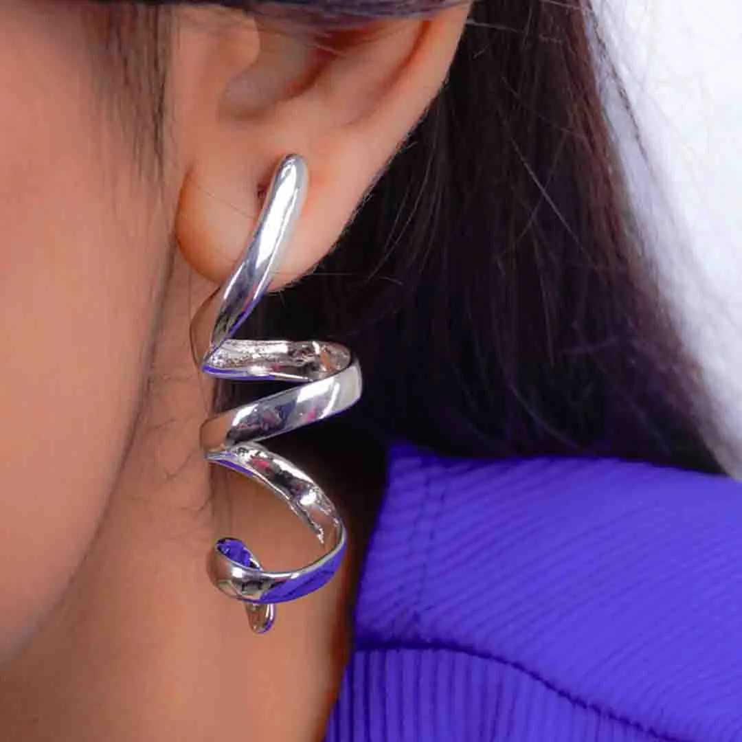 Spiral colied structured dangle earring with silver-tone finish and push back closure