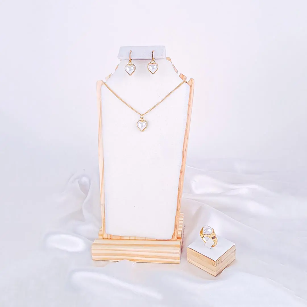 A Set of earring, ring and necklace features gold-toned heart shaped necklace, earrings and ring