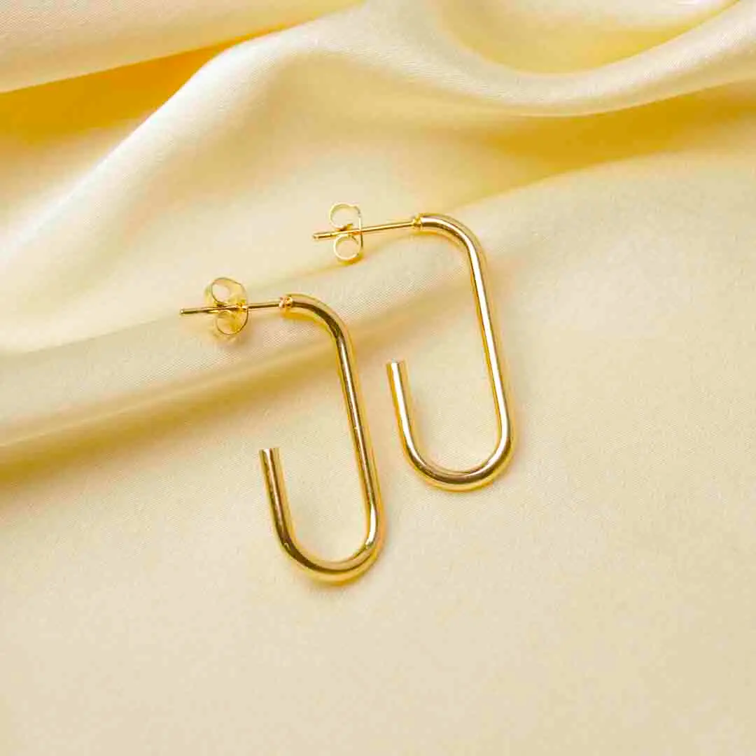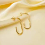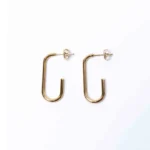 Elongated C shaped metal c hoop earring with polished gold-tone finished and a push back closure