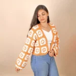 Wrap yourself in effortless charm with our Orange & White Crochet Cardigan, a perfect blend of cozy texture and playful color. Hand-crafted with intricate crochet detailing, this cardigan features a refreshing mix of warm orange and crisp white tones—ideal for adding a pop of personality to any outfit.