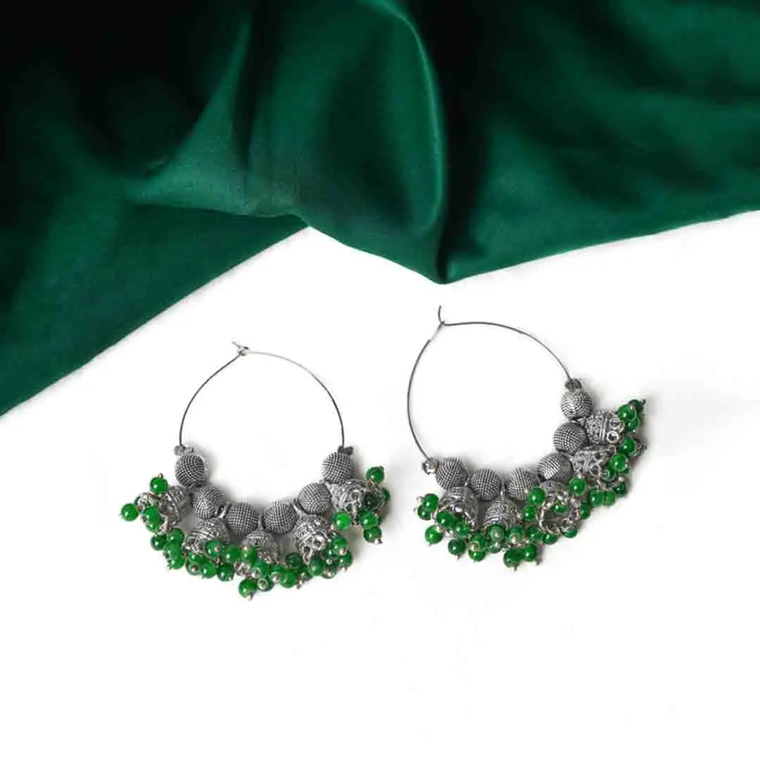 Oxidised Beaded Colourful Jhumka Hoop Earrings