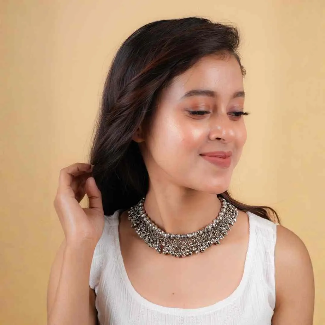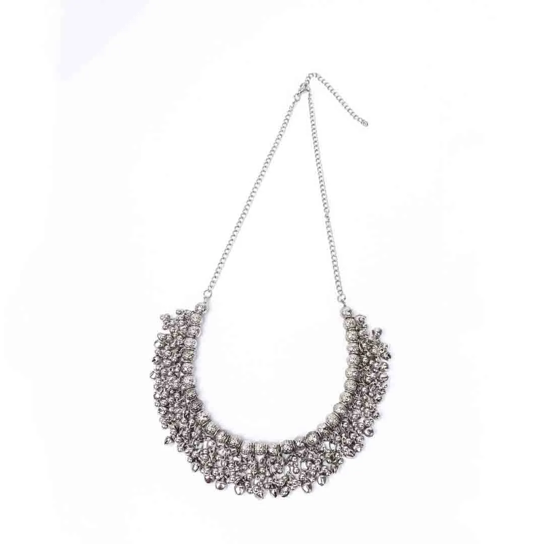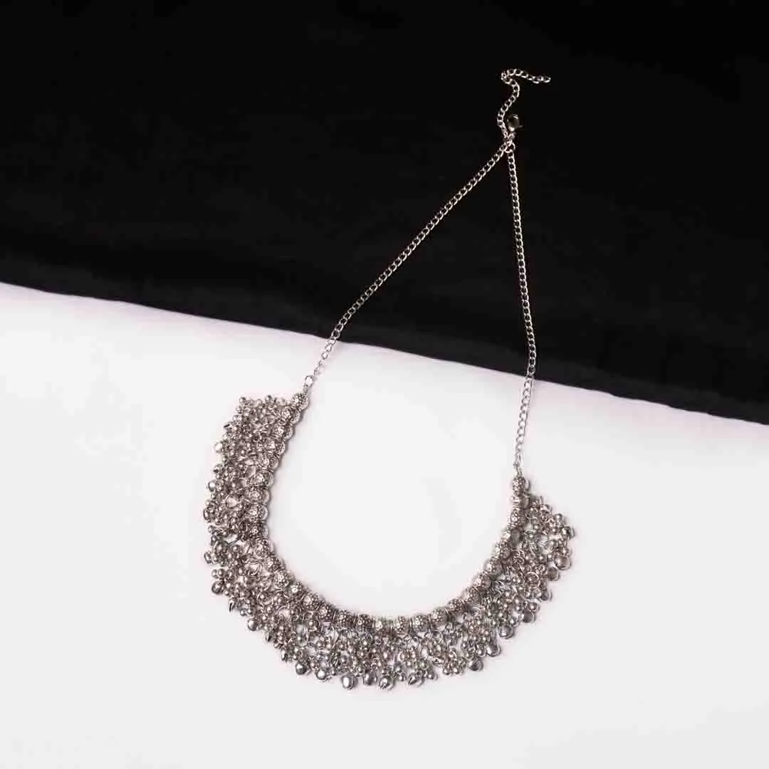 Oxidised Beaded Round Ghungroo Necklace