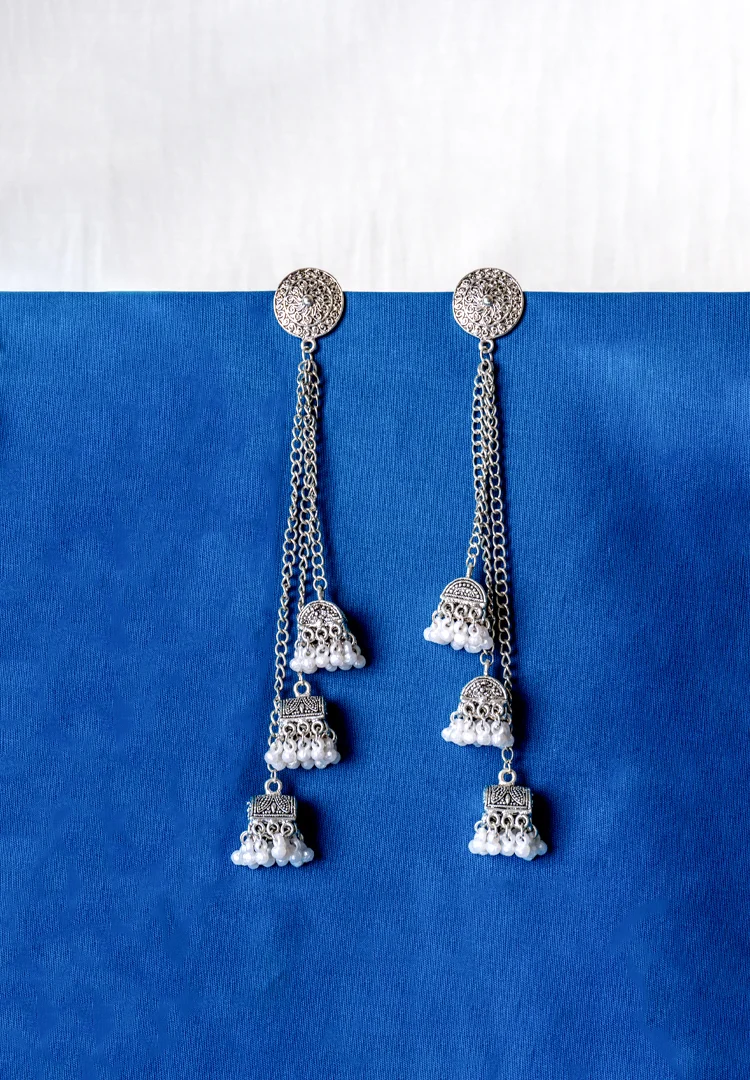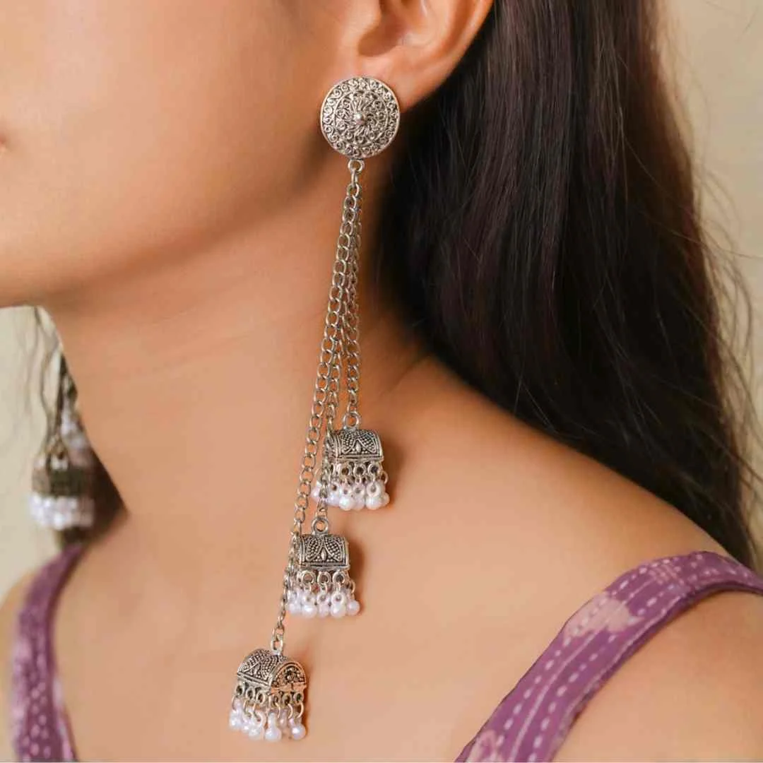 Oxidised Long Jhumka Dangle Earrings
