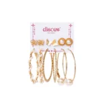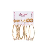 This is a jewellery set of six earrings in golden pearly along with golden hoops and stud.