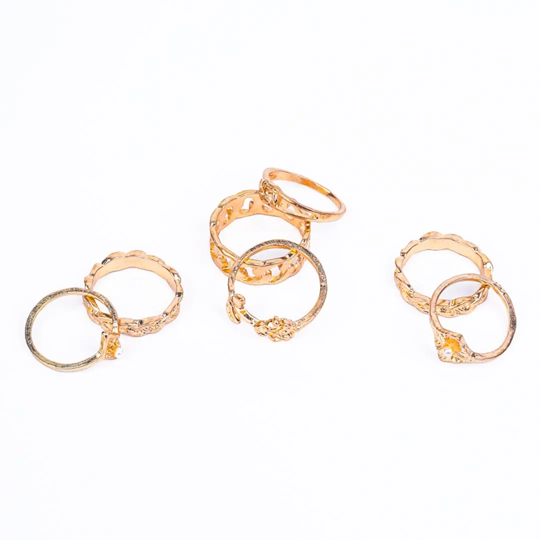 Pack of 7 Boho Golden Rustic Rings Combo