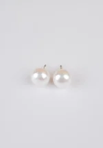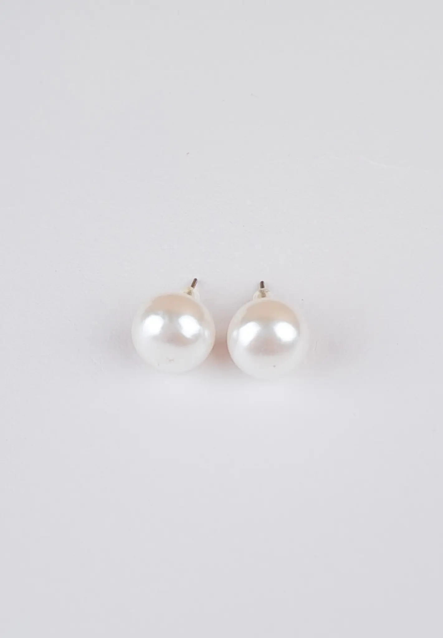 Elegant pearl stud earrings with a classic round design, polished finish, and secure rubber push back for daily wear or special occasions.