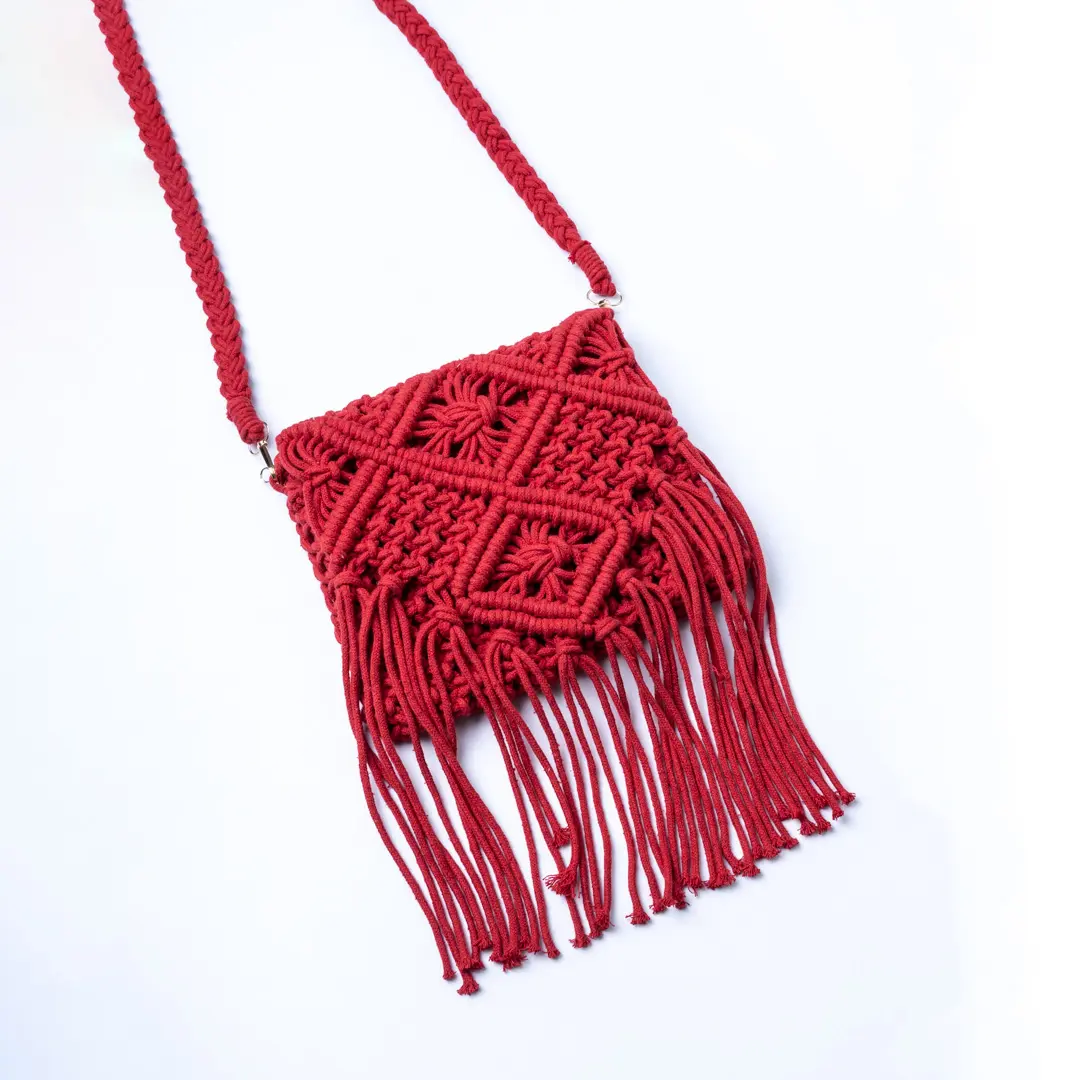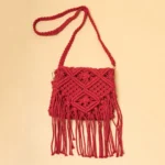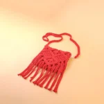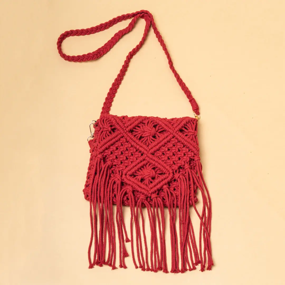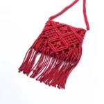 Red Macrame Knotted Tassel Sling Bag