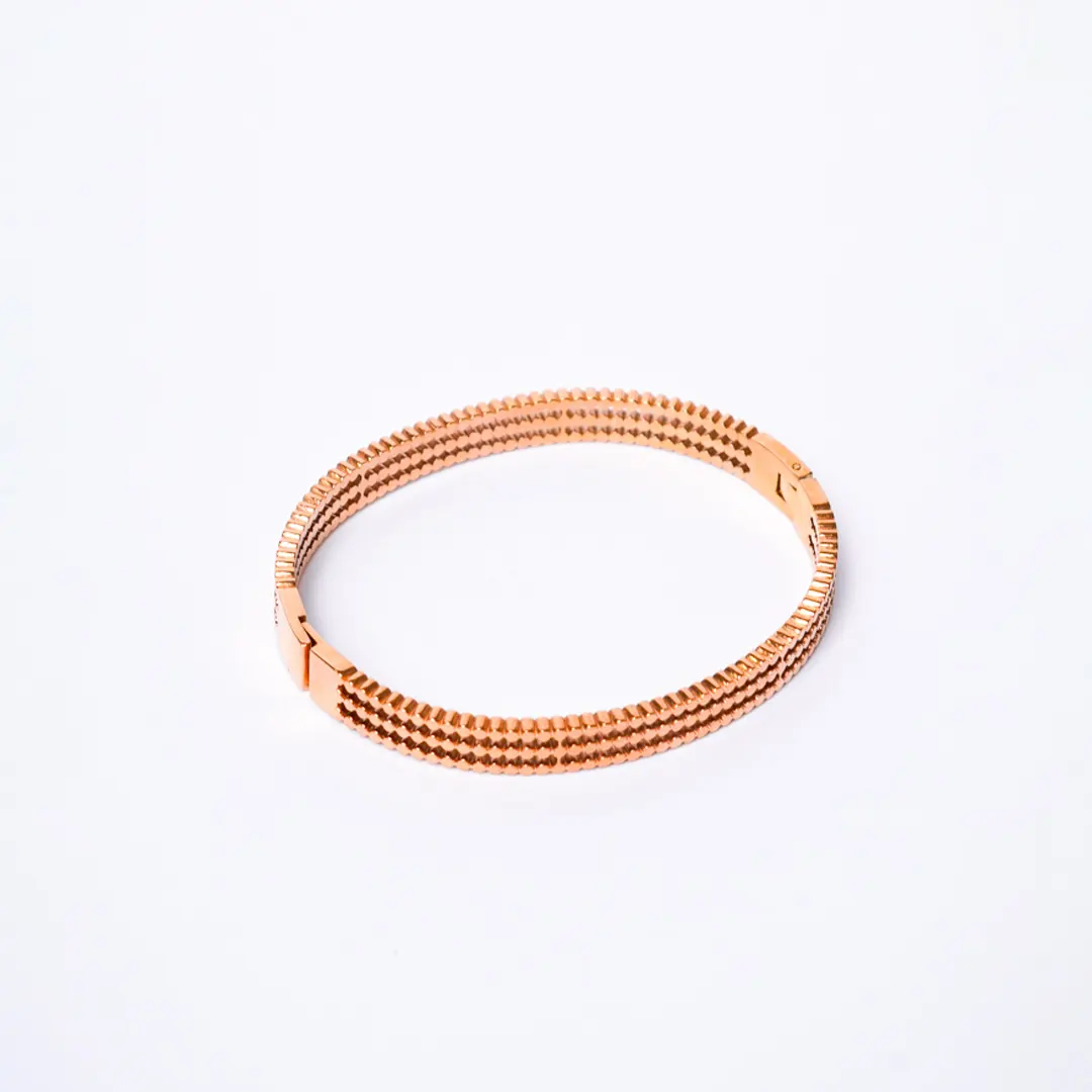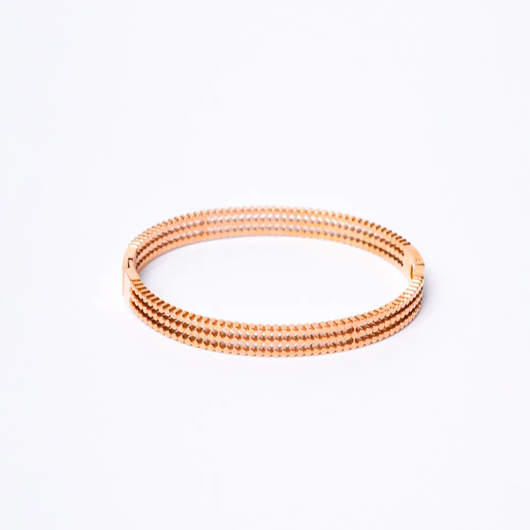 Layered designed rose gold toned hinged bracelet featuring beaded designs