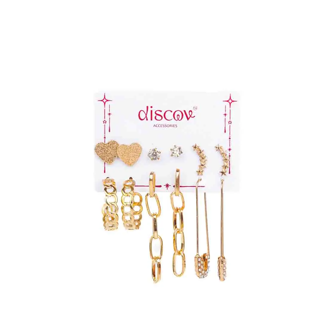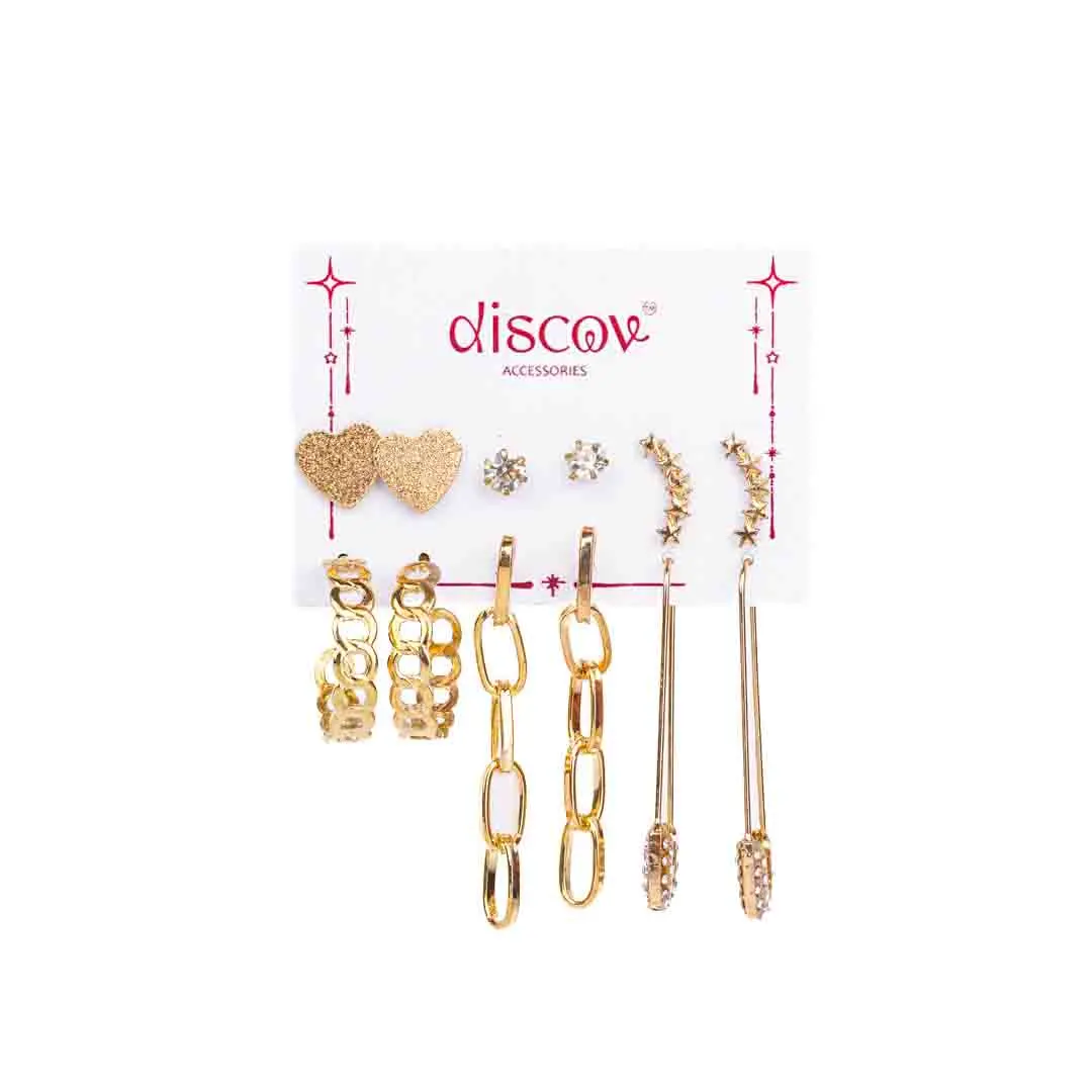 Set of 5 Checkered And Golden Chunky Earrings Combo