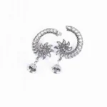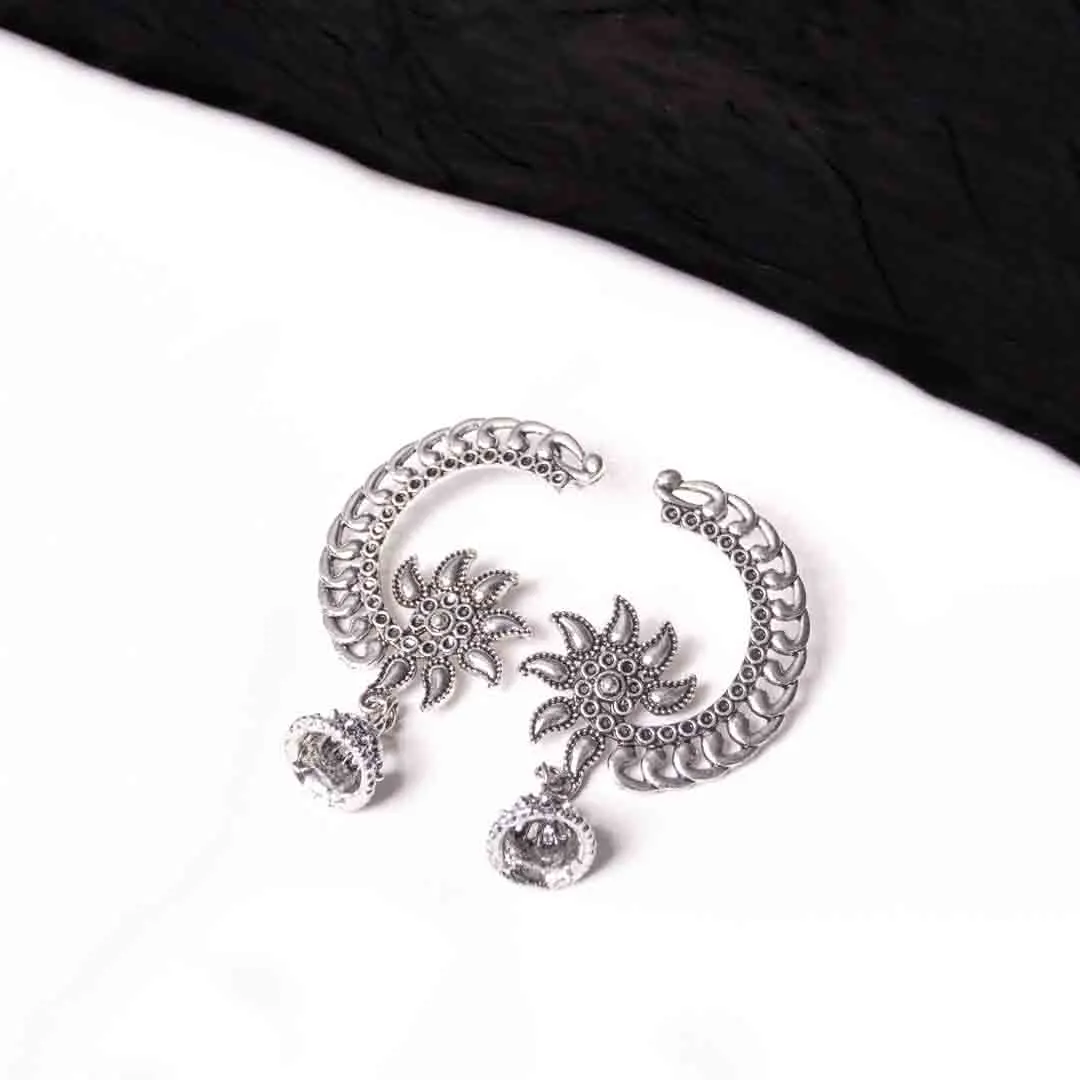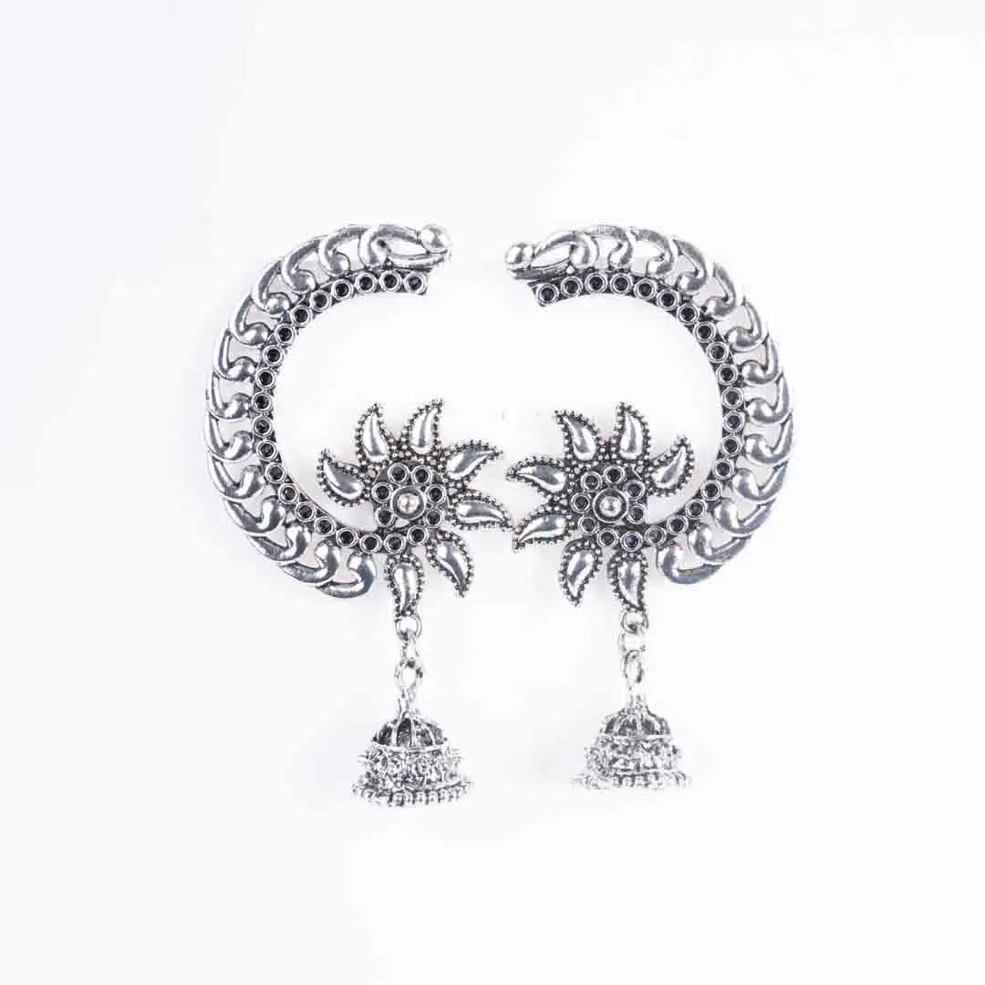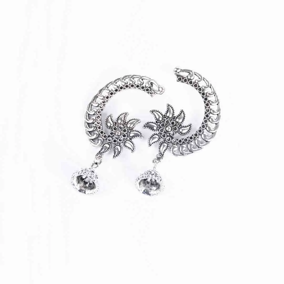 Silver Crescent Shaped Floral Jhumka Earrings