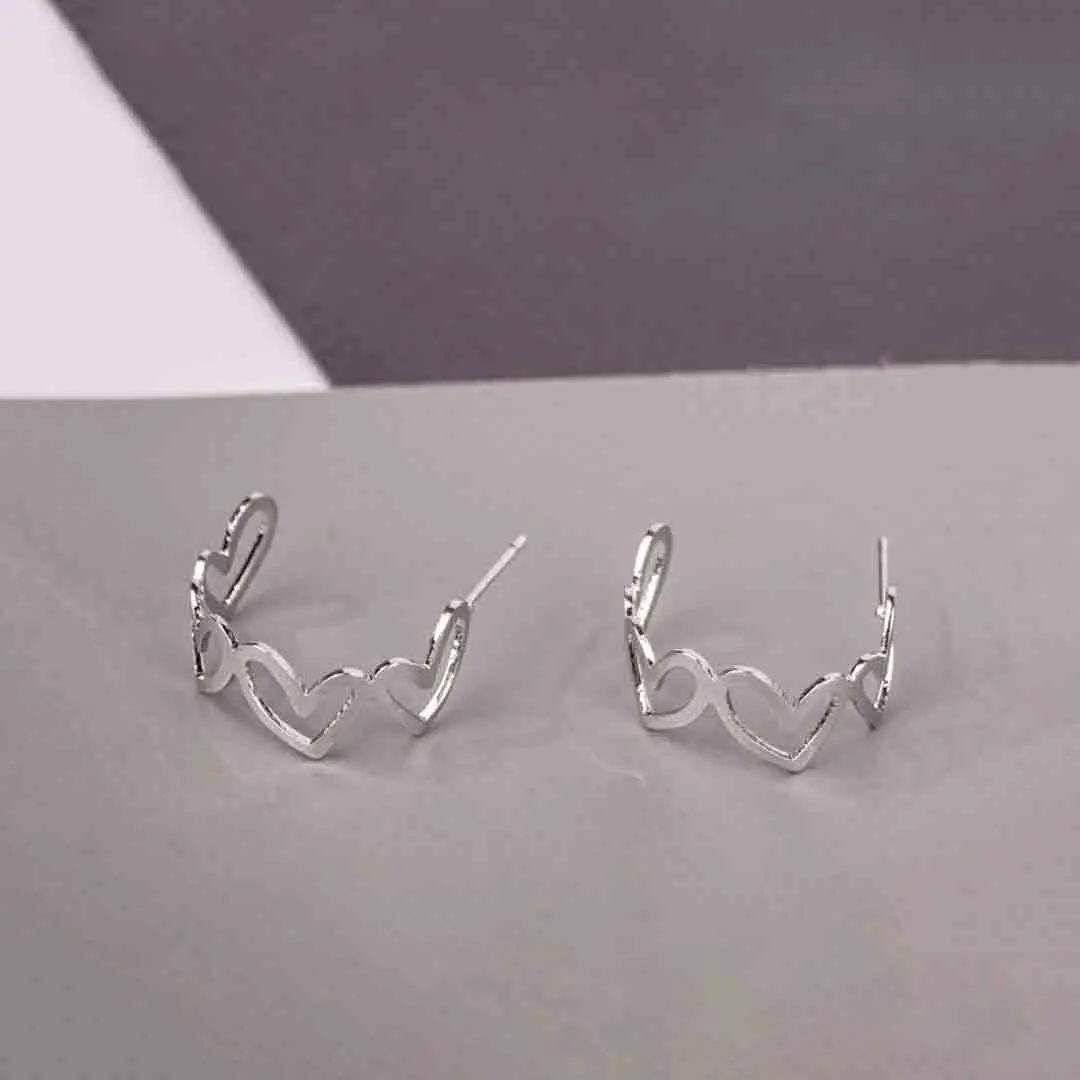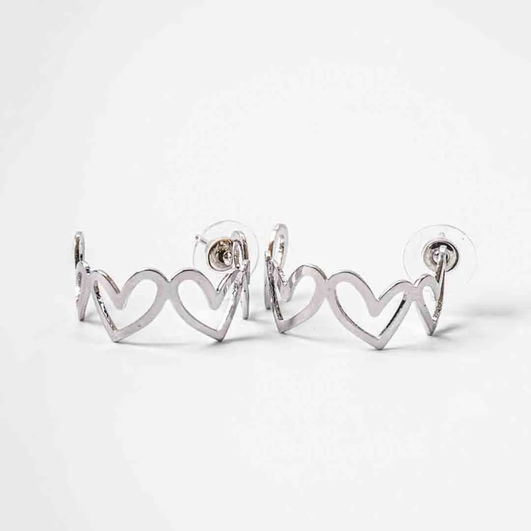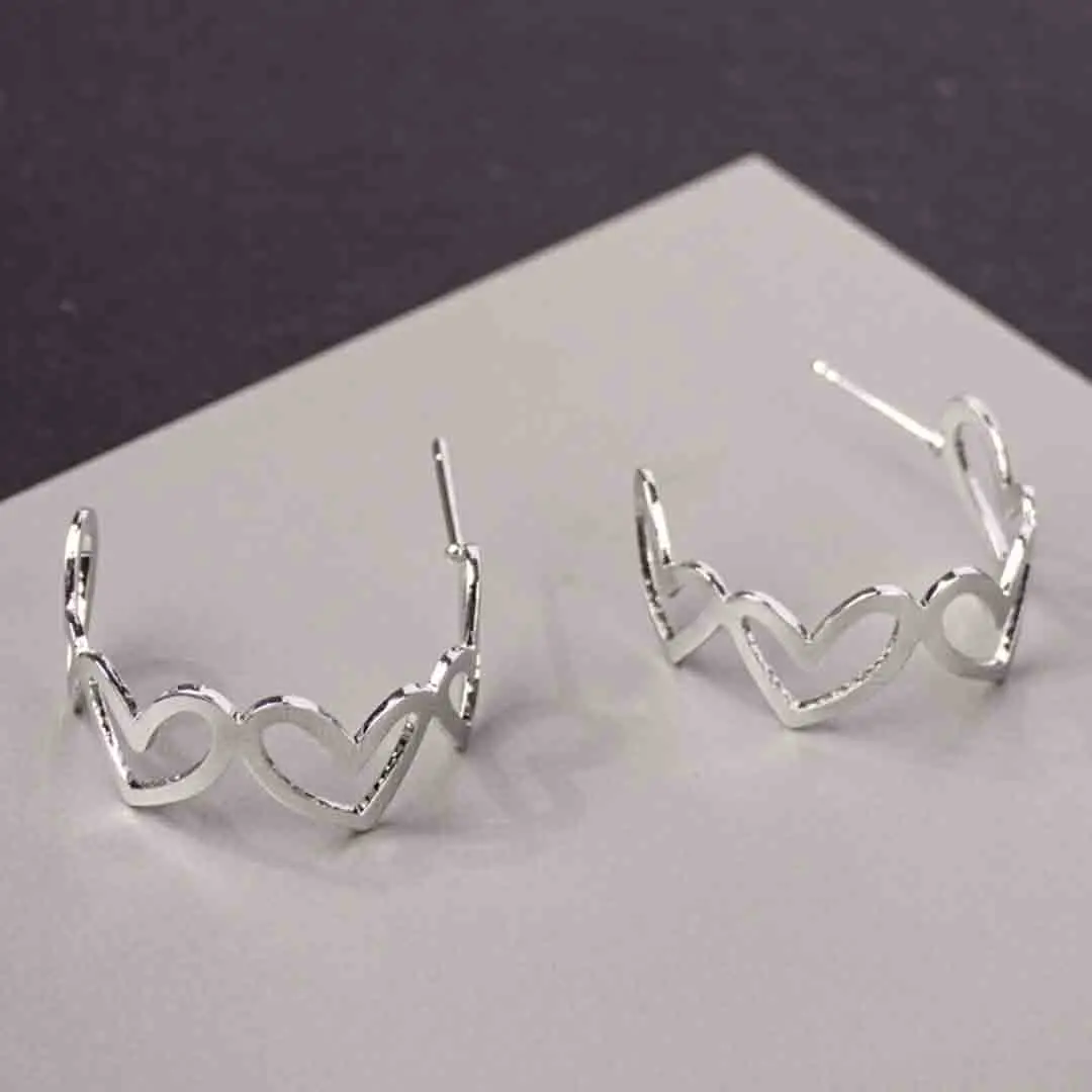 Silver Heart Half Hoop Earrings