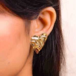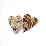 Asymmetrical textured heart shaped stud earring with gold-tone finish and wrinkle effect with push back post
