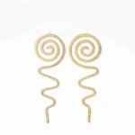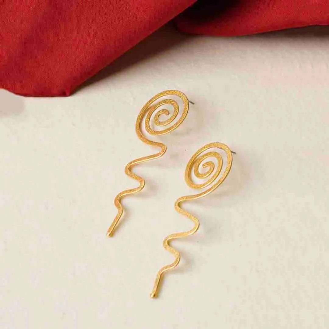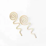 Spiral brass earring featuring a wavy organic line extended downwards with a push back post