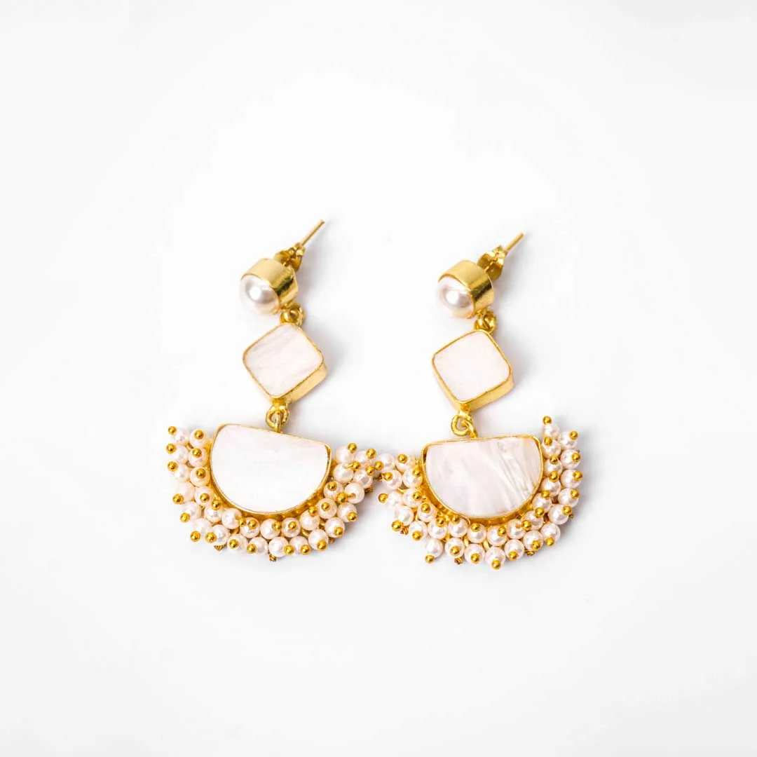 Traditional Geometric Natural Stone Pearl Mogra Earrings
