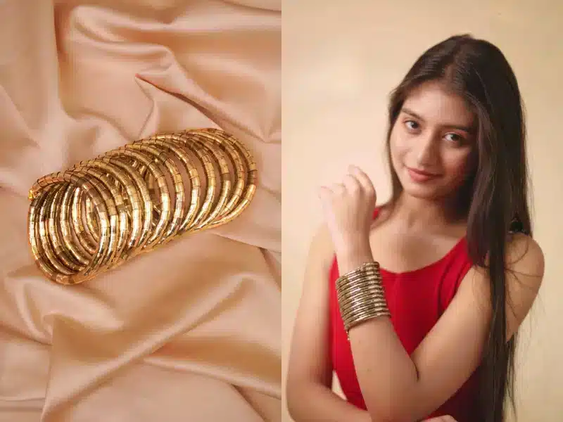 Next, style brass spiral bracelets with kurtis or sarees. As a result, earthy tones feel richer and more expressive.